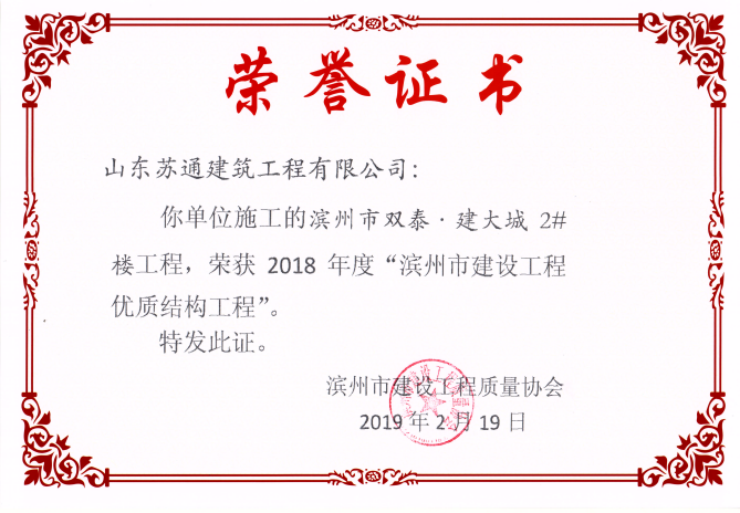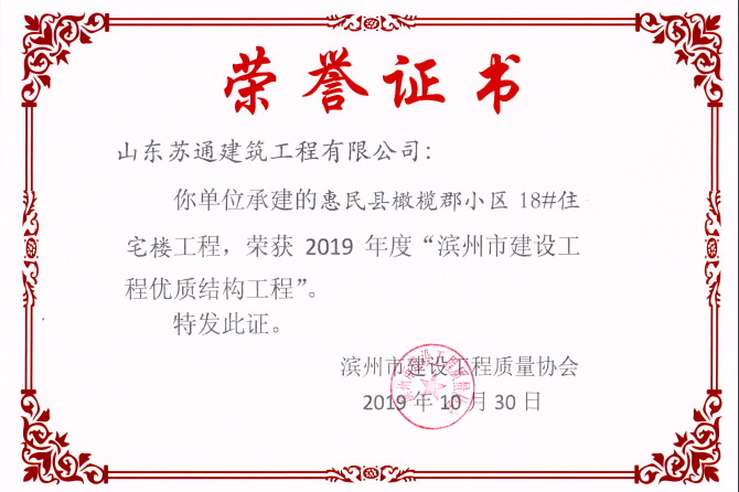 山東蘇通建筑工程有限公司,創(chuàng)建于2009年8月。目前擁有房屋建筑工程施工總承包壹級、市政公用工程施工總承包叁級、水利水電工程施工總承包叁級資質,同時還具有建筑裝修裝飾工程專業(yè)承包貳級、消防設施工程專業(yè)承包貳級、鋼結構工程專業(yè)承包叁級、建筑機電安裝工程專業(yè)承包叁級等專業(yè)承包資質。 公司總部坐落于山東省濱州市濱城區(qū)黃河十二路877號,現(xiàn)有辦公面積約2000平方米,機構設黨支部工會辦公室、總經理辦公室、綜合辦公室、工程管理部、經營預算部、資產財務部、材料設備部、運行管理部、法律事務部等多個職能部門。公司管理體系已經通過了GB/T 19001及GB/T 50430質量管理體系、GB/T 24001環(huán)境管理體系(EMS)、GB/T 28001職業(yè)健康安全管理體系(OHSMS)等體系的認證。 公司承建完工了濱州市建大教師之家、建大清怡苑、香格里拉水岸綠城住宅小區(qū)、雙泰建大城、曲阜崇德公館住宅小區(qū)、北海新區(qū)御景藍灣住宅小區(qū)、沾化德榮國際華城住宅小區(qū)、惠民橄欖郡住宅小區(qū)等工程項目,目前在建工程項目有:濱州市頤高國際電子商務產業(yè)園住宅小區(qū)項目、濱州市東盛國際項目、高新區(qū)建大中央華府住宅小區(qū)項目、濱州市融匯新里程住宅小區(qū)項目、濱州市建大秦皇壹號住宅小區(qū)項目、濱州市森林花...